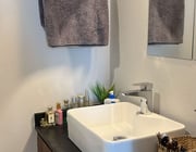 The apartment is 1 bed / 1 bath and is one of 8 in a complex that was built within the year. It has a gorgeous and serene patio/garden, with a table and 2 chairs, two sun chairs, and a lovely array of plants / flowers. There is also a lovely hummingbird feeder that is very busy in the morning and early afternoons.