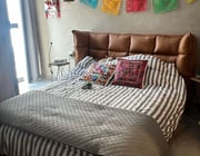 The apartment is relatively new, built and occupied within the past year, and is only 8 units. The design is breathtaking with a unique design, concept, layout, and the best part is the plethora of plants and feature walls with tasteful murals. My favorite is the hummingbird wall, as the hummingbird is an important symbol and bird species here in Guadalajara. The unit has one large bedroom with ensuite full bath (toilet, sink, standing shower), large closet, and door that exits to the patio space. The bed is a queen and includes sheets, comforter, pillows, etc. There is a tv, and you can bring your own Firestick or use what I have.
