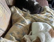 The cat, Lucca, is much less maintenance. He SHOULD be indoor only, if he dashes out he does know where home is and will show up damanding his dinner--but I try to keep him indoors. He gets fed morning and night. I use that opportunity to shut him in a bedroom while I walk the dog.