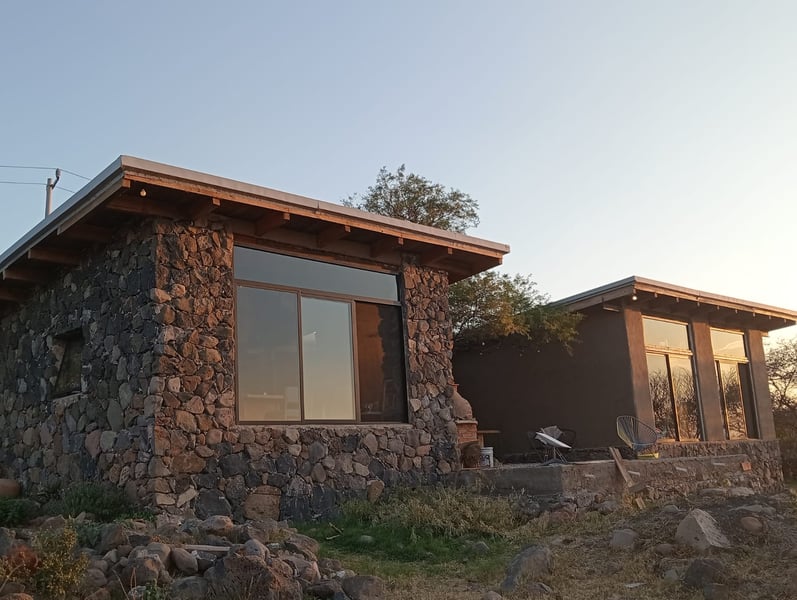 The house sits on a multi-hectare property, enveloped by nature and offering a stunning view of the lake. It is a wonderful spot for birdwatching and enjoying beautiful sunset walks. It is an ideal retreat for those who cherish tranquility; the nearest neighbor is over 200 meters away, ensuring a high degree of privacy. The house was completed just one year ago—though a few exterior details remain to be finished—and was designed and built entirely by us using only local, natural materials such as earth, wood, and stone. The structure captures and stores rainwater, and our bathrooms feature composting dry toilets. The kitchen is fully equipped with everything you might need, and we provide Starlink internet access.