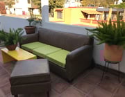 Large rooftop terrace attached with table, sofa, plants, and wonderful views